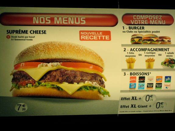 We forked over our €7,20, carried our trays to a brightly-coloured Formica table and inspected our dinner with an analytical eye. So far, the food didn’t look any different than a North American fast food meal.