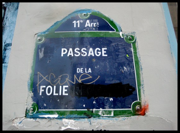 Tags: 11ième, 11th, arrondissement, Camelia Jordana, faire des follies, folie, folly, France, French, French language, Paris, passage de la folie, pochoir, pochoirs, stencil, street art, vocabulary